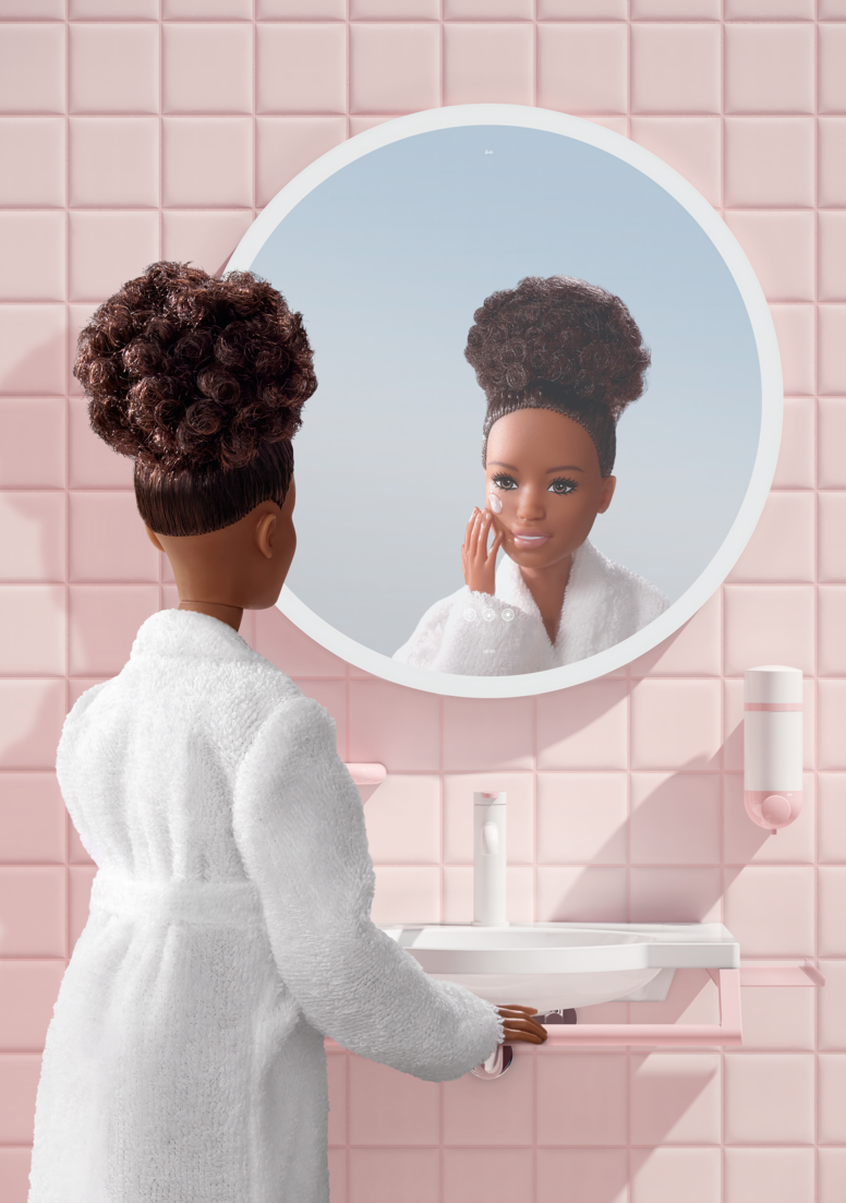 Nach dem Film kam schnell die Idee: das passt zu HEWI. Da sind zwei Marken, die viel verbindet. Und nicht nur weil auch wir „plastic is fantastic“ leben. Die Ideologie von Mattel und Barbie Mädchen zu stärken, ihnen Selbstbewusstsein zu geben und Möglichkeiten aufzuzeigen, was sie im Leben alles sein können. Auch HEWI nimmt diese Rolle im Bereich der barrierefreien Architektur ein. Wir wollen das Menschen unabhängig von ihrer persönlichen Situation so selbständig und selbstbestimmt wie möglich ihr Leben führen können. Unser Schwerpunkt liegt seit über 40 Jahren in der Ausgestaltung von Bädern in den unterschiedlichsten Anwendungsbereichen. Das geht vom Krankenhaus bis ins Hotel – vom privaten Bad bis in öffentliche Einrichtungen. Wir wollen gutes Design schaffen und Produkte intuitiv nutzbar machen. Wir nutzen die Prinzipien des Universal Designs und sehen unsere Aufgabe darin tagtäglich dafür Sorge zu tragen, dass Diskriminierung und Stigmatisierung keinen Raum haben. Wie wäre es denn, eine Barbie™ x HEWI Kollektion zu kreieren? Eine Kollektion, die für alle nutzbar ist. Das Bad für Barbie mit schönen Accessoires, einem passenden Waschtisch und einem Spiegel. Ein Traumbad sozusagen. Und mit ein paar Adaptionen schaffen wir das identische Feeling und nehmen lediglich die Produkte zur Unterstützung für jemanden mit Einschränkungen mit auf: Haltegriffe, einen Duschsitz und einen unterfahrbaren Waschtisch. Natürlich alles im Barbie™ x HEWI Design. Wir geben mit dieser Kollektion unbegrenzte Möglichkeiten für Alle! Unabhängig von der sehr individuellen Situation des jeweiligen Nutzers.