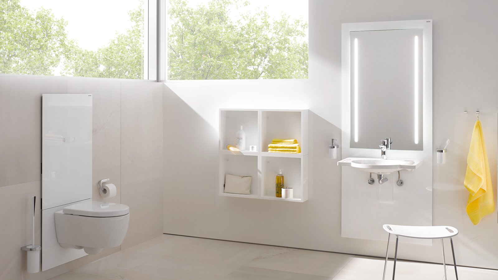 Ergänzend sollten Haltegriffe an WC, Waschtisch und Dusche fest eingeplant werden. Sie bieten nicht nur Stabilität beim Aufstehen und Hinsetzen, sondern auch Sicherheit bei Transfers aus dem Rollstuhl. Für noch mehr Komfort lassen sich Stützklappgriffe und höhenverstellbare Systeme integrieren, die flexibel auf individuelle Bedürfnisse reagieren. Auch eine gute Beleuchtung trägt wesentlich zur Sicherheit bei: blendfreie, gleichmäßige Lichtquellen und gezielte Spots an Funktionsbereichen wie WC, Waschtisch und Spiegel erhöhen die Nutzungsqualität.