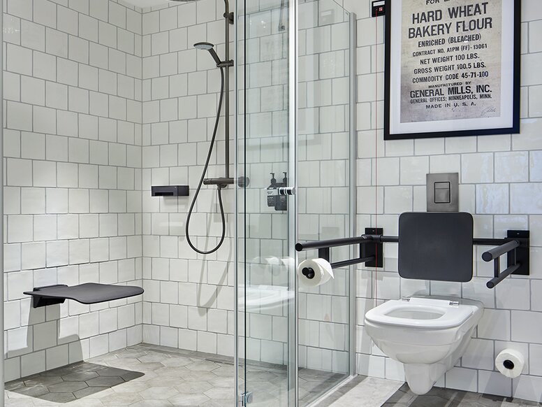 Schwarz ist minimalistisch, zeitlos und edel. Oberflächen in Schwarz matt sind darüber hinaus haptisch angenehm und passen harmonisch in zeitgenössische Interieurs, insbesondere zum rauen Industrielook, in dem gegenwärtig viele Hotels, Gastrobereiche und Büros gestaltet werden. Auch in privaten Badezimmern sind Produkte in Mattschwarz ein Designstatement. HEWI, der Experte für barrierefreie Sanitärlösungen und Beschläge, bietet nun zahlreiche Produkte in mattschwarzem Finish, mit denen sich von der Tür bis ins Bad ein durchgängiges und stilvolles Interior Design verwirklichen lässt. Neu dazugekommen sind eine filigrane Sitzfamilie sowie verschiedene Desinfektionsspender in Schwarz matt.