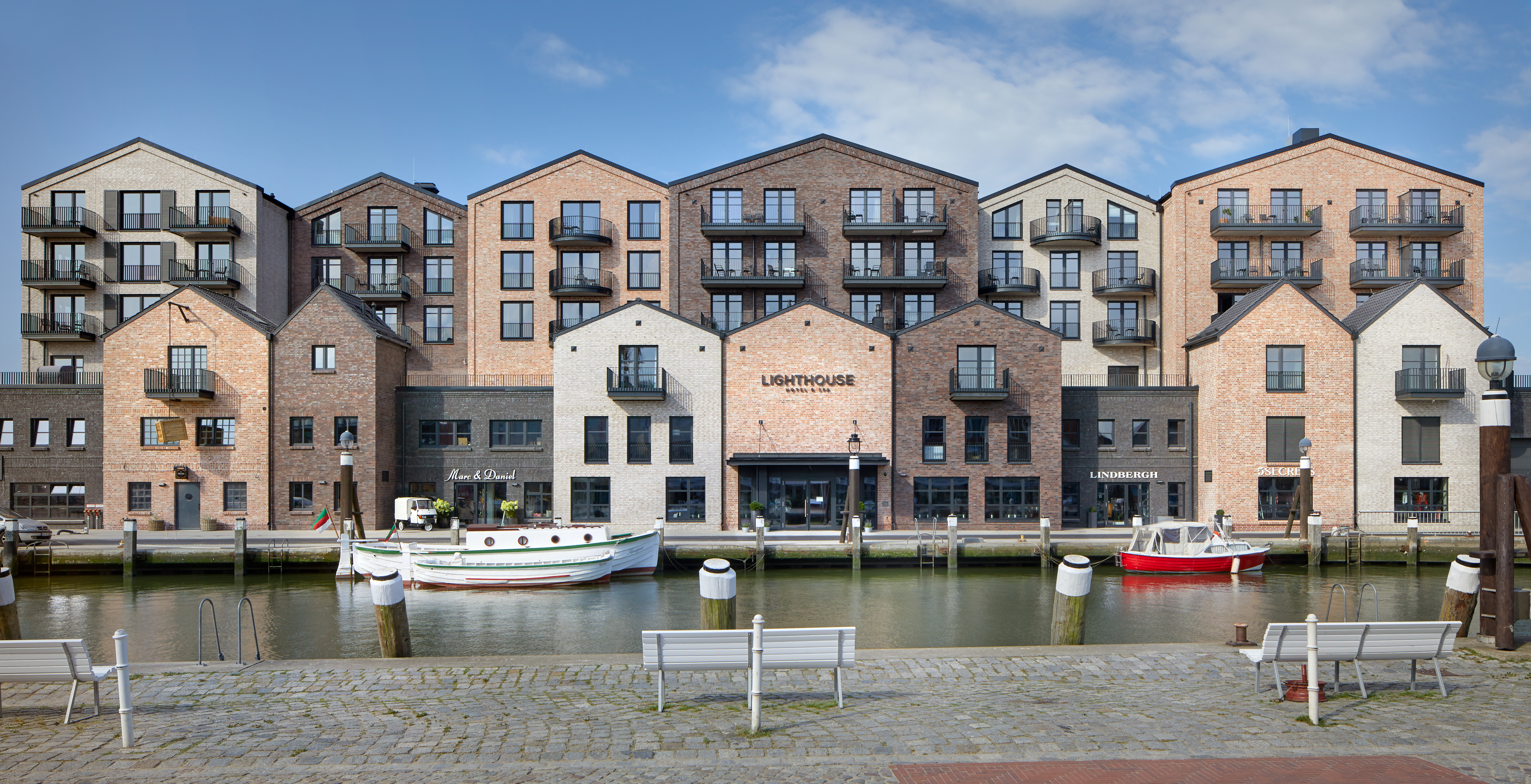 Auch im Büsumer Wellnesshotel Lighthouse Hotel & Spa fügen sich die HEWI Serien mit ihren edlen, mattschwarzen Oberflächen perfekt ins Ambiente ein und akzentuieren die reizvolle Mischung aus maritimen Einflüssen, urbanem Chic und stylishem Industrie-Look. Schwarze Bau- und Designelemente sind stilprägend und finden sich in sämtlichen Bereichen des Gebäudes. Ein besonderer Fokus lag auf der Gestaltung der komfortablen Hotelbäder, die mit dem HEWI System 900 ausgestattet sind. Sämtliche Bäder sind barrierefrei konzipiert, was ihnen nicht anzusehen ist und daher vom gestalterischen Ansatz vollkommen der Philosophie von HEWI entspricht.