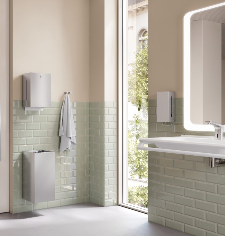 From soap and paper towel dispensers to hygiene combinations and wastebins in various sizes, HEWI offers a coherent, functional assortment that combines the highest design standards with long-lasting quality.