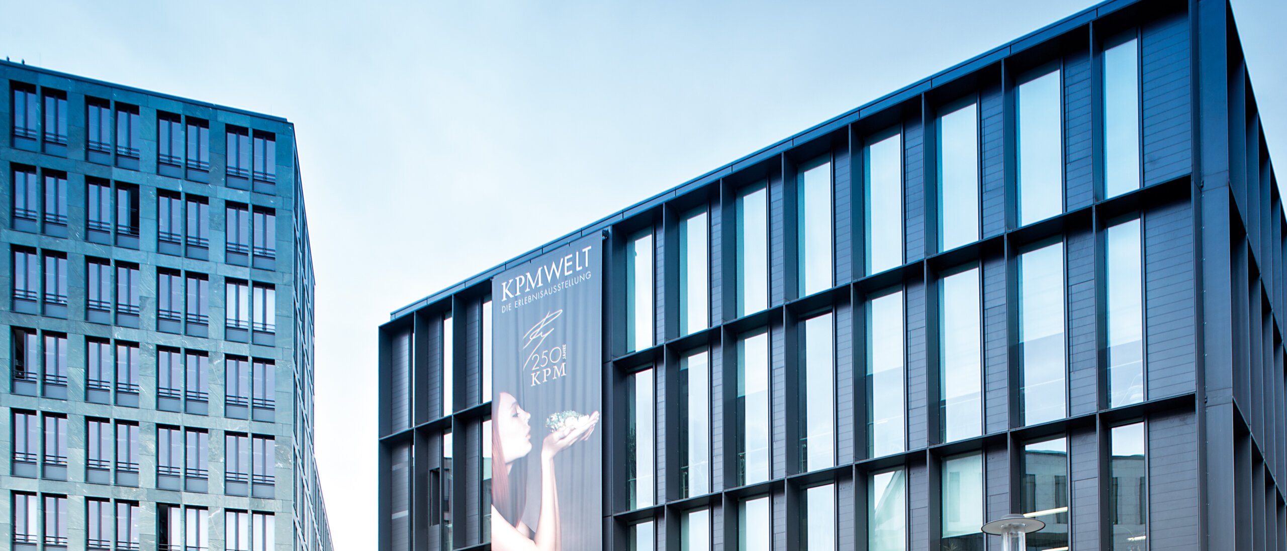 It was the reason for the name of the newly created Spreestadt, the so-called KPM-Quatier. Numerous office and residential buildings have settled around the KPM site. The original production facility was extensively renovated and redesigned - the former Ringoffenhalle is now used as a sales and exhibition building. Each change of location creates a new image of the building for the observer - the storeys appear like cuboids stacked loosely on top of each other, some of which extend beyond the façade level and are turned in on themselves.