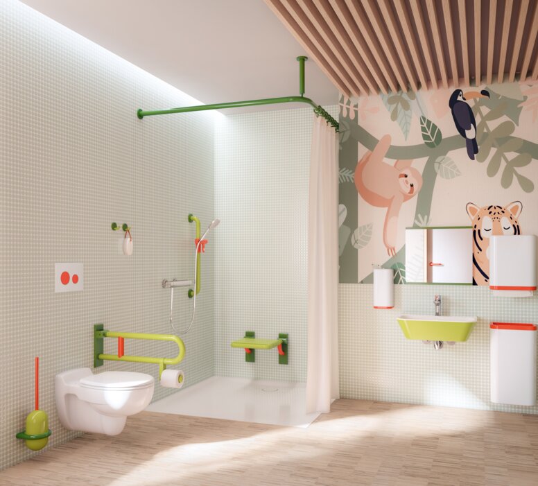The design of sanitary facilities in nurseries requires detailed planning in order to meet the high safety and hygiene requirements. HEWI offers you support as architects and planners.