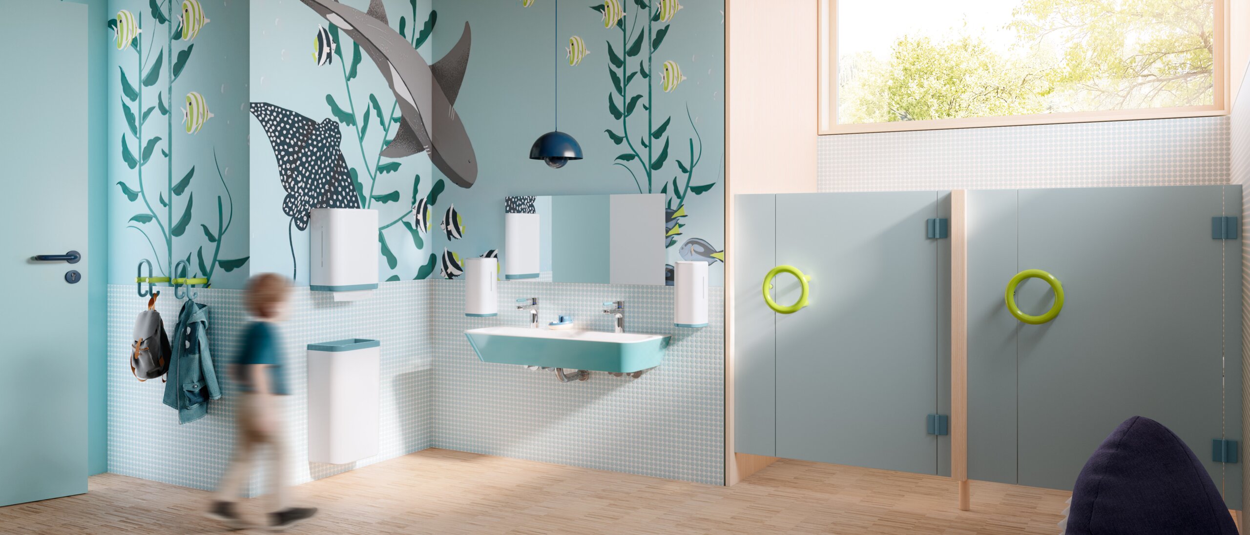 In nurseries, WC partitions must not only be safe and functional, but also meet the special needs of the youngest children. How do modern partition wall solutions manage to combine a child-friendly design with a high level of hygiene and easy handling? In this article, you will find out what details are particularly important when designing WC areas in nurseries – and how HEWI can help you to create safe and attractive sanitary rooms.