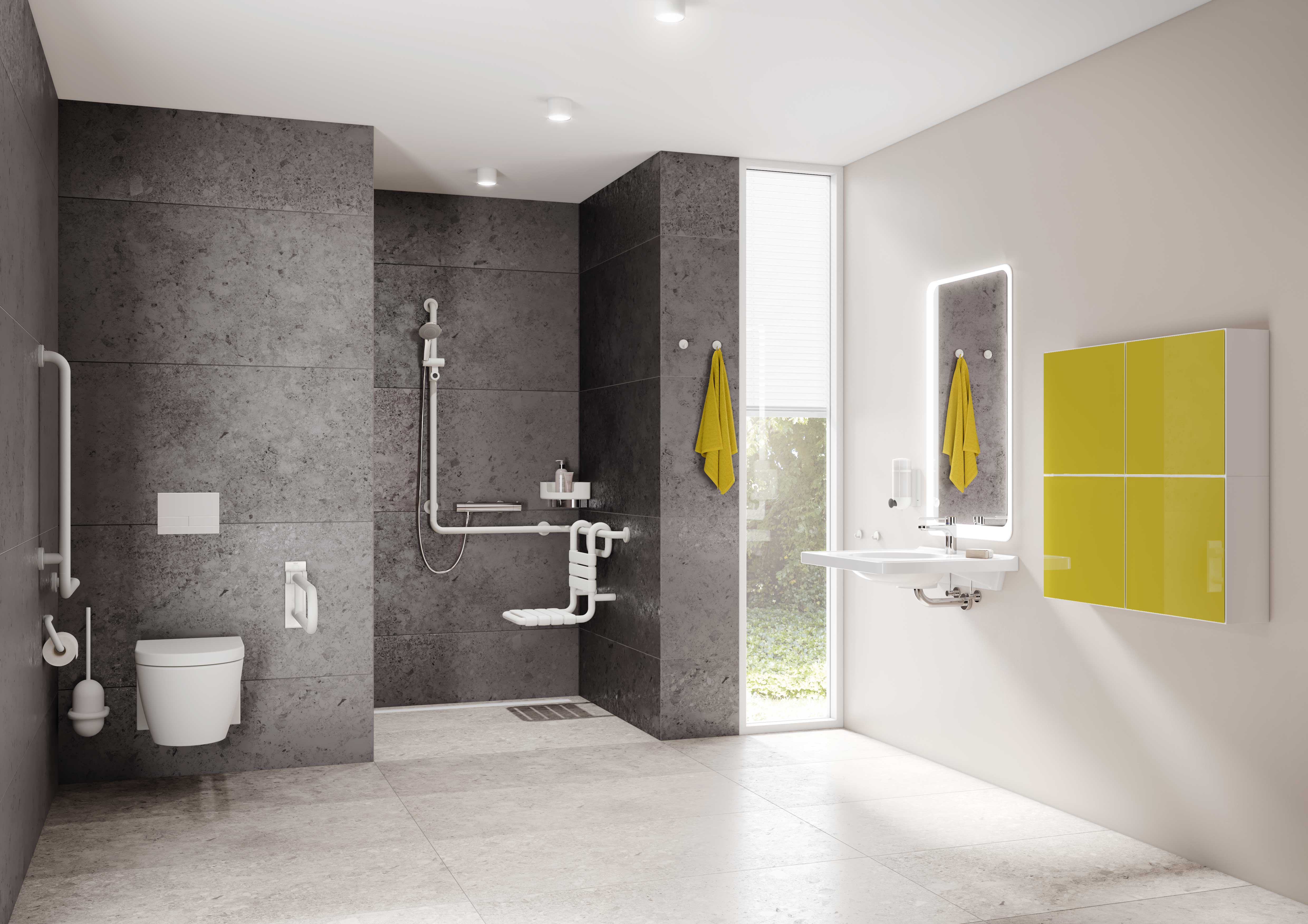 The comprehensive range from door handles and sanitary accessories to comfort products and, up to and including, accessible elements enables consistent furnishing, precisely tailored to the individual needs of users.