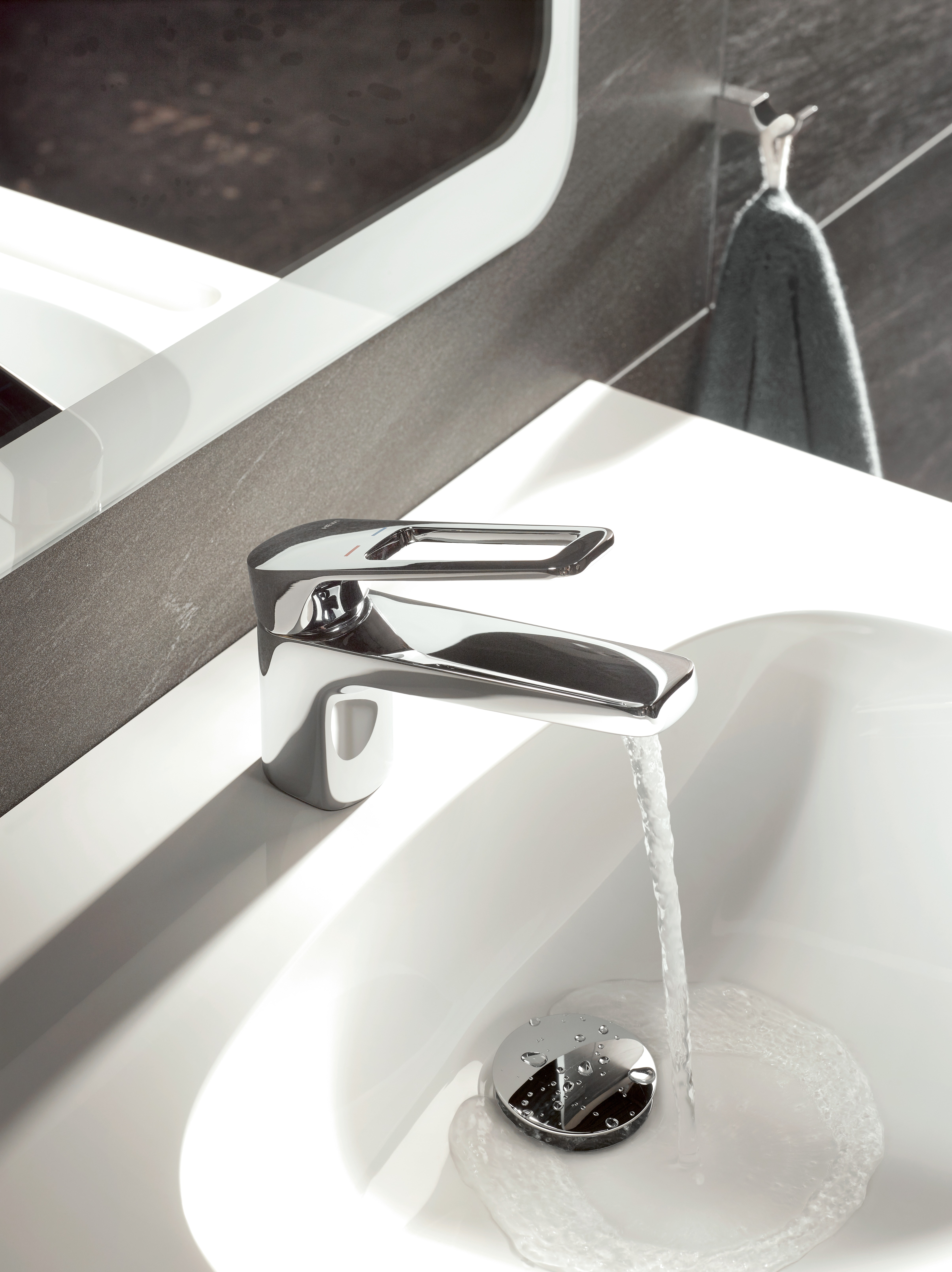 Tested, high-quality materials not only offer safety but also guarantee the durability of the fittings. Depending on the requirements, the faucet is available as a manually operated single-lever basin mixer or as a sensor-controlled faucet. Functionality and operating forms differ in these two variants - but not in their design language.