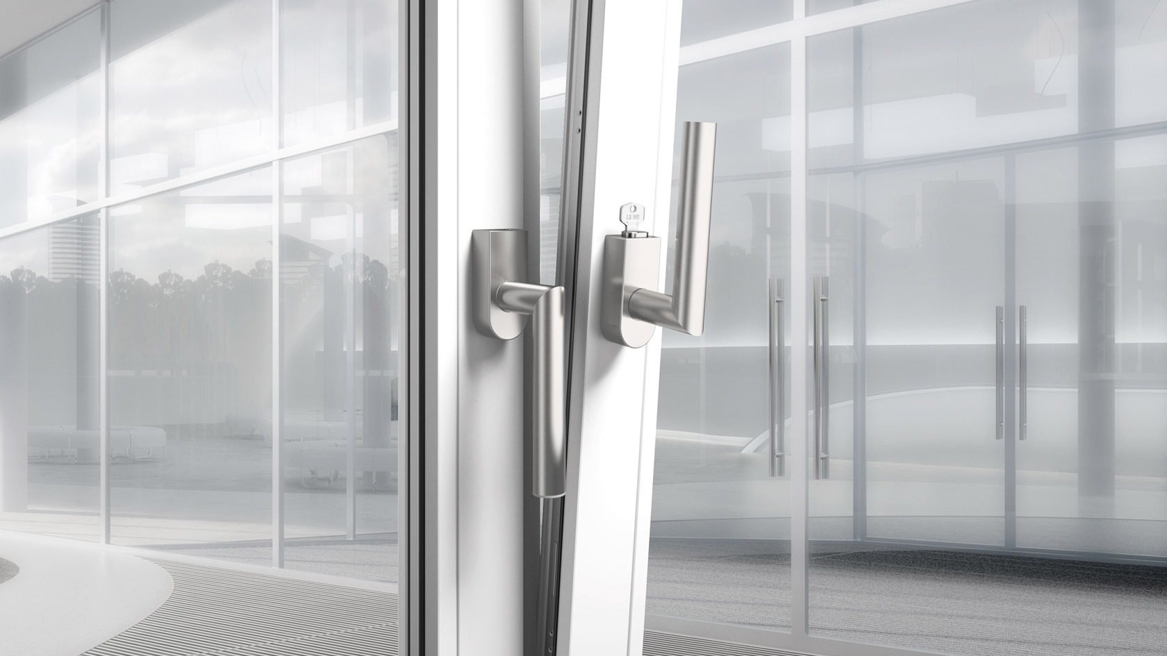 HEWI window handles for locking enable windows to be opened only with a key. In addition, optional lockable window handles with a tilt-before-turn function are available. If the window handle is locked, when turned through 90° it releases the window for tilting. The window leaf cannot be completely opened (turned) in a closed function