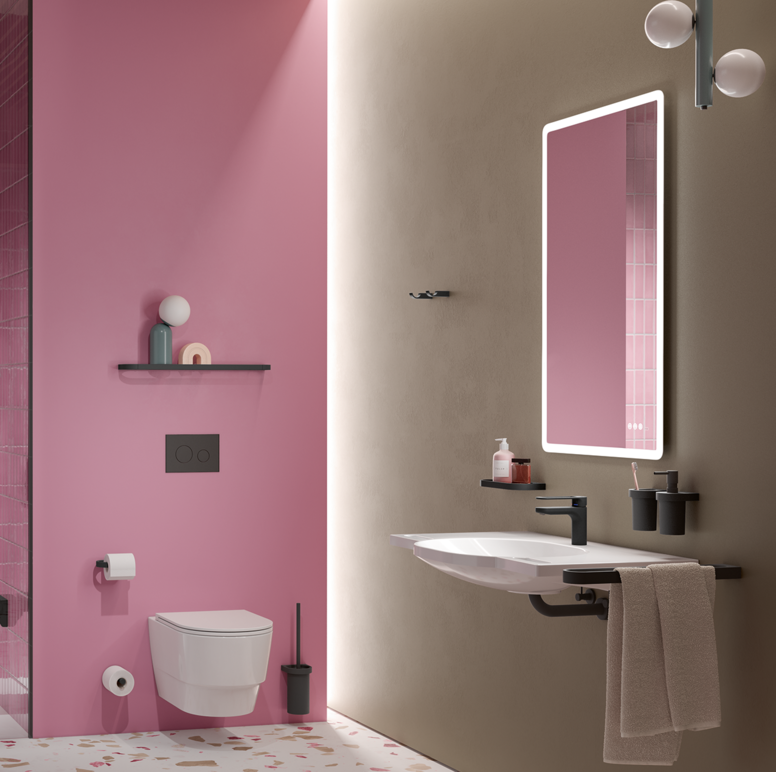 • From washbasins and accessories to fittings, hinged support rails and seats