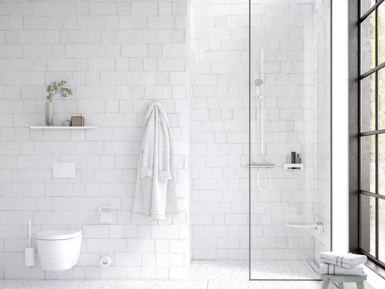 System 162 can be ideally combined with the universal products in classic black and white.The colour variants open up a wide range of design options that can be harmoniously integrated into any bathroom. The fold-up shower seat and the folding support handle offer maximum comfort and safety and can be flexibly adapted to different needs.